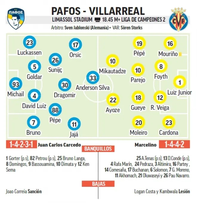 帕福斯前3场2平1负,上轮做客0比0打平阿拉木图凯拉特,主将若昂-科雷亚本场停赛。比利亚雷亚尔在本赛季的欧冠中1平2负,上轮主场不敌曼城。球队的伤病情况有所好转,锋线名将赫拉德-莫雷诺伤愈复出后连续破门。洛甘-科斯塔、坎布瓦拉都因伤缺阵。结合指数的态度,我认为帕福斯防守不错,比利亚雷亚尔一球小胜。