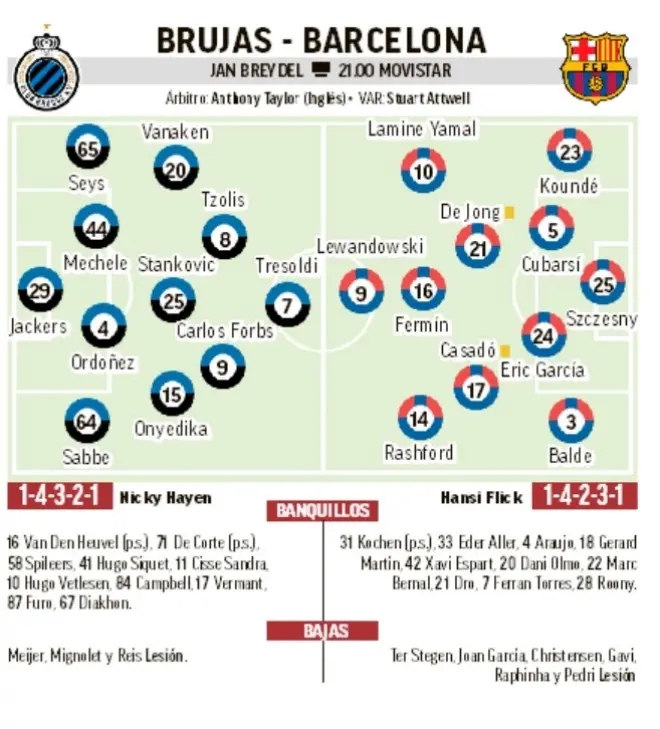 布鲁日前3场1胜2负,他们曾经在主场4比1大胜摩纳哥,在主场的战斗力确实不容低估。老门将米尼奥莱等3人因伤缺阵。巴萨依旧面临伤病问题,拉菲尼亚、佩德里、加维、克里斯滕森和特尔施特根都踢不了,好在波兰锋霸莱万多夫斯基已经伤愈复出。结合指数的态度,让平比较豪放,我还是倾向于巴萨打穿!