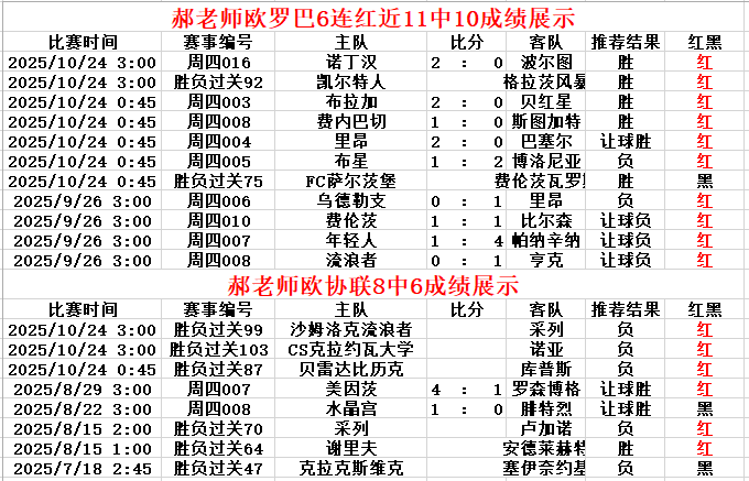 郝老师 欧罗巴6连红近11中10 欧协联8中6
