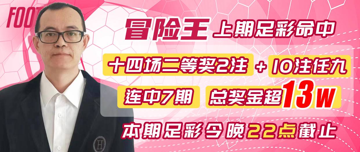 冒险王上期足彩命中 十四场二等奖2注+ 10注任九,连中7期,总奖金超13w 本期足彩今晚22点截止
