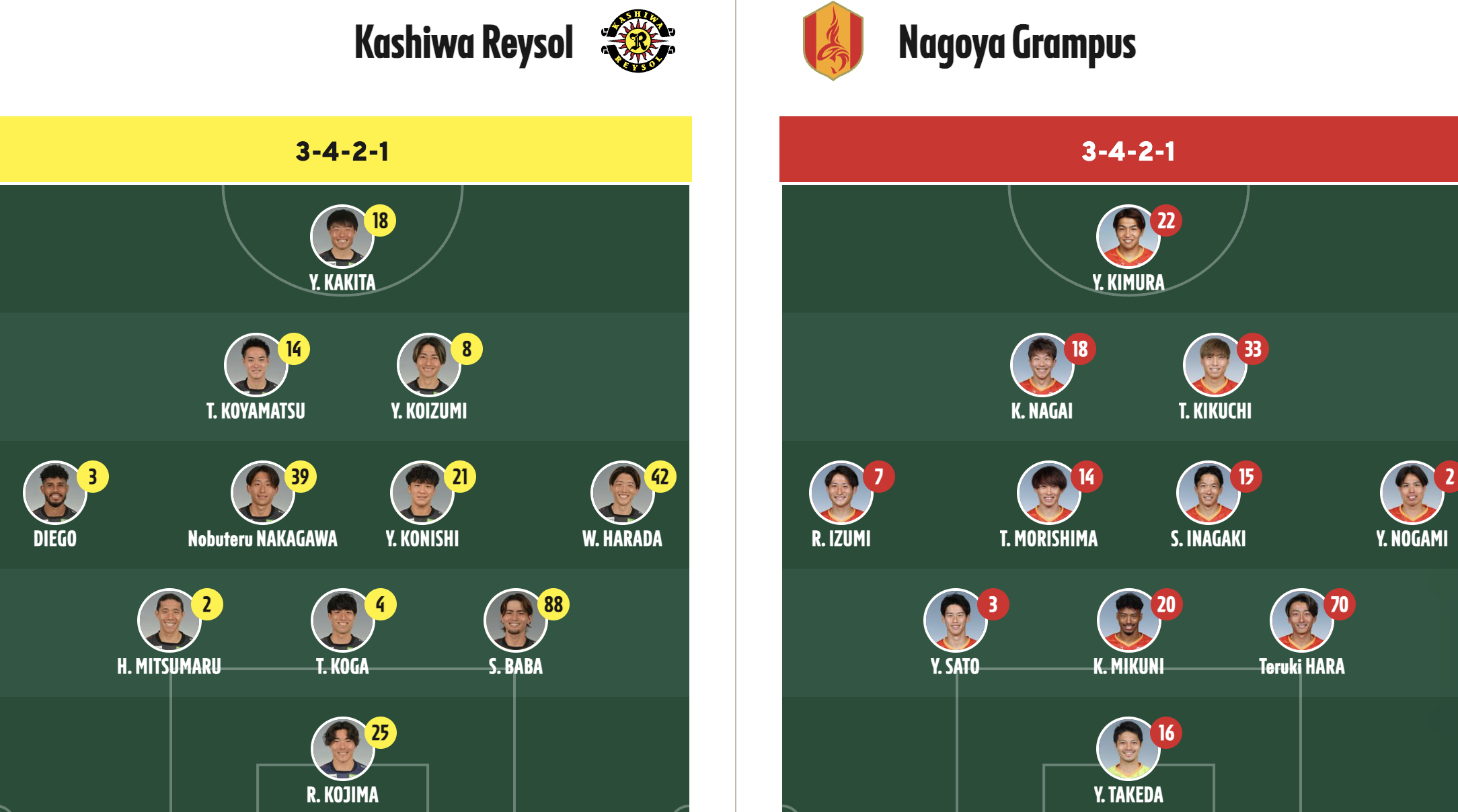 柏太阳神上轮主场2比0击败横滨FC,收获联赛三连胜。主帅罗德里格斯沿用击败大阪钢巴的首发阵容,替补登场的山田雄士远射破门,仲间隼斗补射锁定胜局。虽然球队在联赛杯决赛1比3不敌广岛三箭屈居亚军,面对广岛的高位压迫,他们全场被动,半场就0-3直接让比赛没有悬念。今天首发来看,亘田裕辉首发图钱,小泉佳穗和小屋松知哉在他身后,迭戈首发,后防还是古贺太阳坐镇。