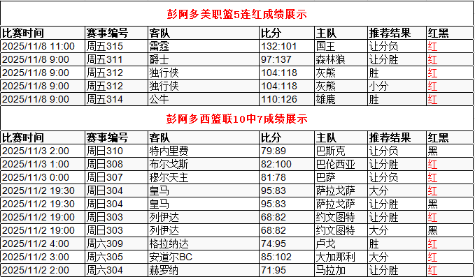 彭阿多美职篮5连红 西篮联10中7 今日美职篮西篮联期待延续好状态,另有德篮联近6中5!今日精选场次已发!