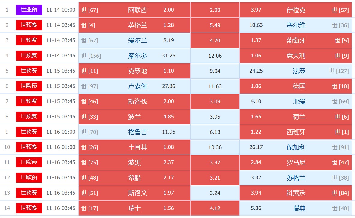 主队爱尔兰目前在世界排第62名,近几年大赛上,球队在2024欧预赛2胜6负排在小组第6名,就赢了直布罗陀。第四届欧国联小组赛B2组,球队2胜4负排在第3名,保级附加赛搞定了保加利亚。这次的2026世欧预,球队在F组压力不小,暂时1胜1平2负排在第3名。客队葡萄牙目前排在世界第5名,近几年球队在第三届的欧国联上小组赛3胜1平2负,非常可惜最后一轮输给西班牙从而没能出线。另外2024欧预赛,球队小组赛10战全胜,打进36球且仅仅在3-2战胜斯洛伐克的时候,下半场丢了2球。2024欧洲杯小组赛是险胜捷克,发挥不算好但结果是好的。随后3-0大胜土耳其,提前确定出线后又爆出大冷2球输给格鲁吉亚,之后1/8决赛淘汰斯洛文尼亚也比较惊险,而到了1/4决赛就被法国淘汰了,发挥起伏就难有好结果。第四届欧国联,球队在小组赛A1组是4胜2平排在榜首进入冠军赛,之后首轮淘汰丹麦进入半决赛,然后逆转德国进入决赛并且和西班牙打到了点球大战而夺冠,确实表现不错。这次的2026世欧预,球队在F组压力还是有点的,但确实战力很强,在小组赛3胜1平排在榜首。往绩上,爱尔兰1平4负。这次给到客让步,对于葡萄牙是有支持,整体上力度其实符合实力基础,但对于球队来说压力不大了,一场平局即可完场任务,而爱尔兰有机会争夺第2名的附加赛,所以这个情况下主会受到一定关注了,但葡萄牙各方面来讲优势不小。(竞彩玩法的最终选择可以届时看我发布的本场建议,那里会说明究竟是如何选择,看好的比分是什么,欢迎关注带您赢)