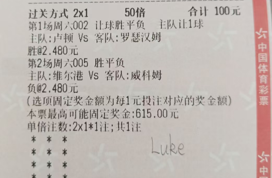 《2串1》002卢顿+005维尔港(比分,进球数,半全场)