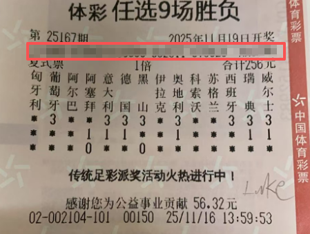 25167期胜负彩14场、任九场(256元实战等巨奖)