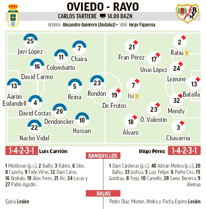 奥维耶多上轮做客0比1输给毕尔巴鄂竞技,开局2胜2平8负,排在积分榜的最后一位,落后安全区3分。经历换帅后,球队依旧没有起色,新帅卡里翁压力很大。好在40岁的老将卡索拉已经伤愈复出,他和锋线上的隆东以及中场的比利时人登东克尔是这支球队经验最丰富的所在。巴列卡诺目前4胜3平5负,上轮在主场0比0逼平皇马。不过因为多线作战,球队的伤病情况略严重。从指数来看,本场客胜的赔付给高了,我看有冷。