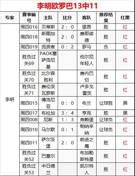 李明欧罗巴6连红13中11