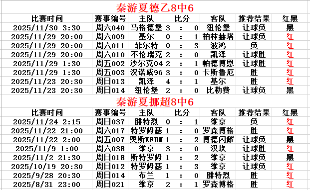 秦游夏 德乙8中6 挪超8中6 今日秦游夏继续带来多场比赛解读,点击→ 秦游夏 查看信心方案!