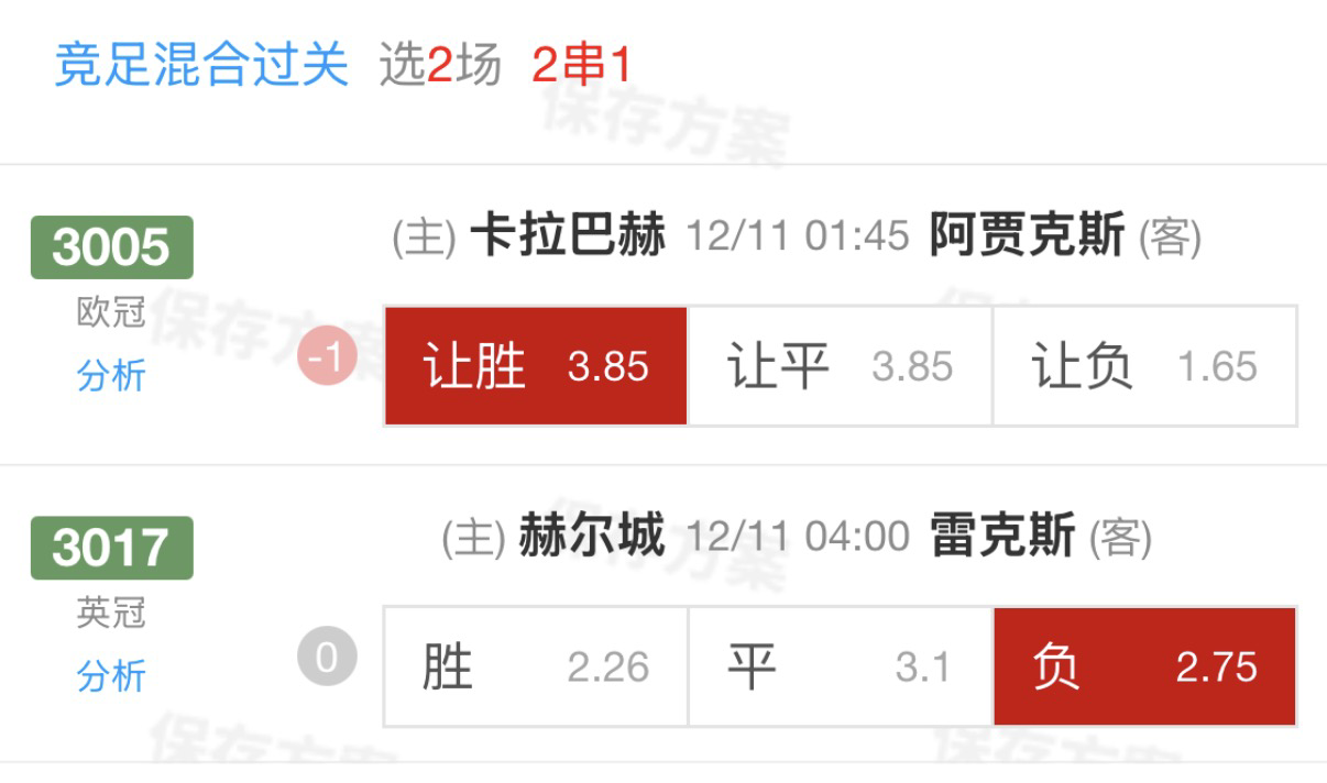 12月7日:德岛漩涡1比1(5.6倍)、拉齐奥1比1(5.5倍)、西班牙人1比0(6.1倍)