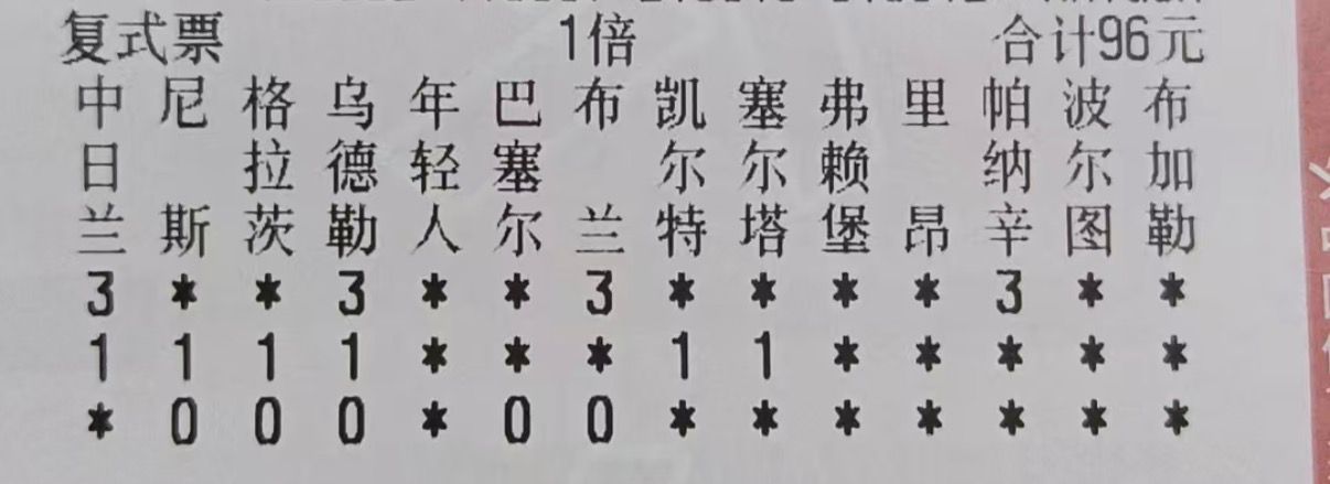 本期任九96元实战方案: