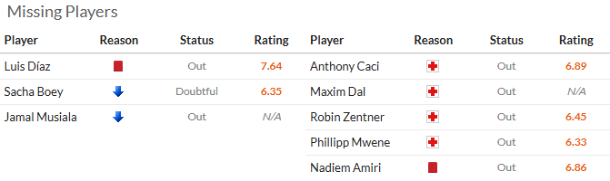 拜仁周中在主场3比1轻取里斯本竞技,欧冠5胜1负,出线在望。由于联赛中领先优势太大,拜仁的绝大多数球员消耗不大,很多场次都是轻松加愉快。路易斯-迪亚斯本场停赛,阿方索-戴维斯、伊藤洋辉、博伊、穆西亚拉都伤愈复出。美因茨在德甲排名垫底,中场主力阿米里停赛,一周双赛害惨了他们。拜仁继续打穿!