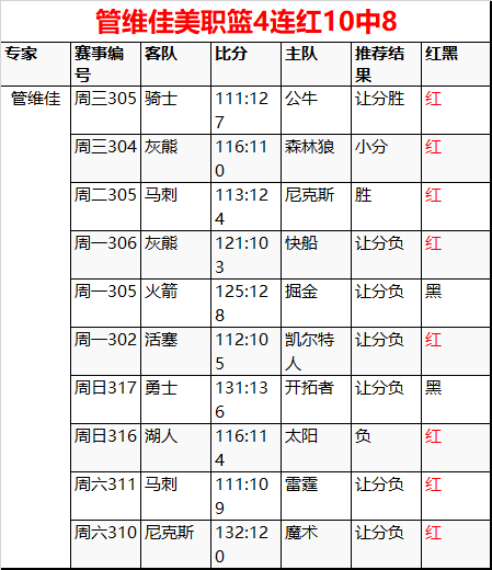 知名解说管维佳 昨美职篮2场全红 长线10中8