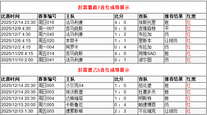 葡超7连红 德乙5连红 点击→