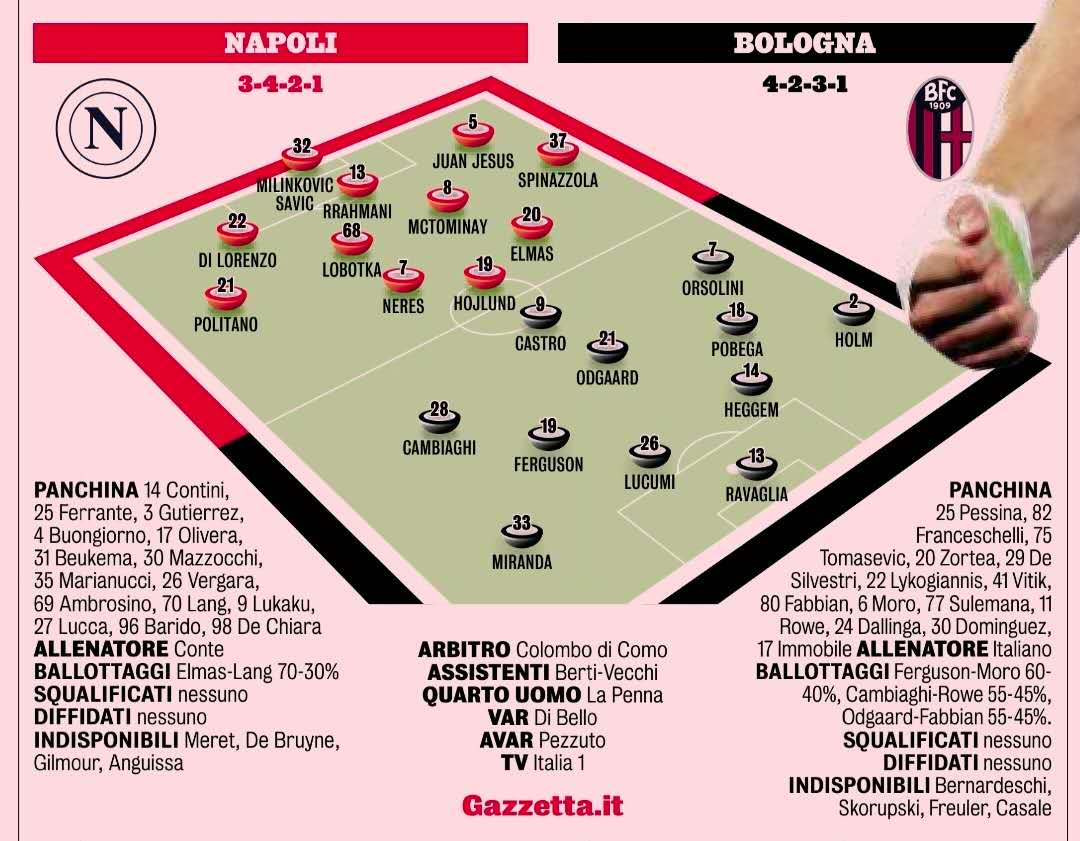那不勒斯和博洛尼亚在半决赛分别淘汰了两个米兰,其中那不勒斯常规时间2比0击败AC米兰,博洛尼亚则是常规赛1比1逼平国米,经过点球大战晋级到决赛。本场比赛是在沙特阿拉伯的中立场地进行。那不勒斯的伤病情况还是比较严重,梅雷特、德布劳内、吉尔莫、安吉萨和卢卡库还是无法出战,麦克托米奈的表现至关重要。博洛尼亚则缺少弗罗伊勒、斯科鲁普斯基、贝尔纳代斯基等人。两队本赛季在意甲已经有过一次碰面,当时博洛尼亚在主场2比0击败那不勒斯。我觉得那不勒斯的让步已经非常不错,31格局,搏主胜!