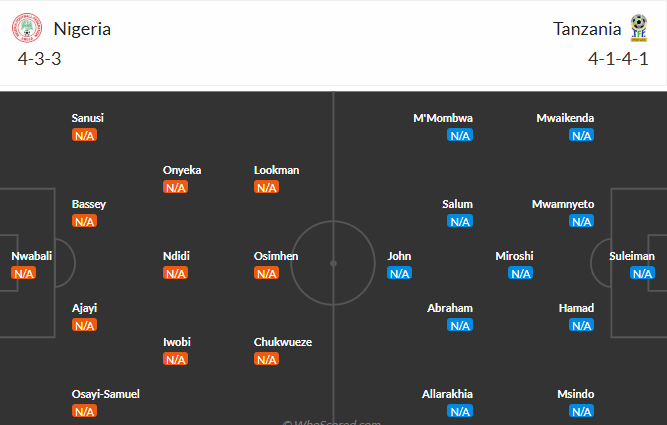 尼日利亚无缘世界杯,这届非洲杯就是球队近两年最重要的比赛了,是否要争口气,就看这些球员的发挥。奥斯梅恩、伊沃比、卢克曼等名将都入选,球队的阵容几乎是清一色旅欧。坦桑尼亚重在参与。我看让胜。