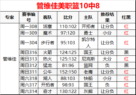 管维佳昨日美职篮3场全红 长线10中8