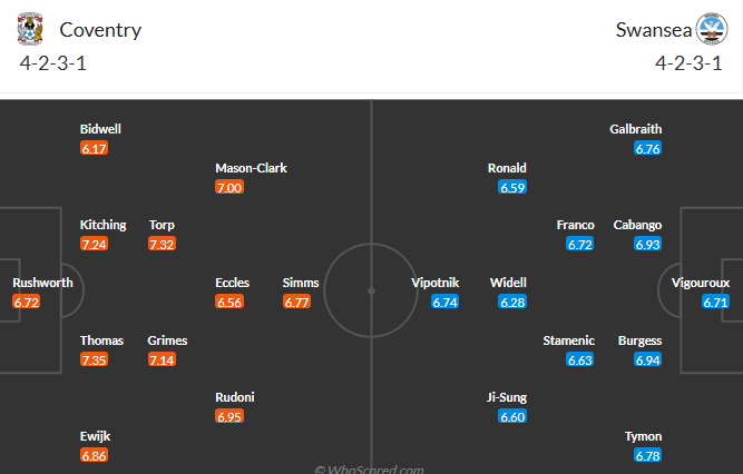 考文垂上轮做客1比1打平南安普敦,近期在客场两连平,领跑优势缩小到6分,不过他们的主场战绩还是不错的,近期主场4连胜。中场达席尔瓦停赛,阿桑特和多文因伤缺阵,鲍比-托马斯等3人伤愈复出。斯旺西近期在主场取得3连胜,但在客场已经连输4场。中场本松停赛。综合考虑,我还是选择了力挺考文垂。