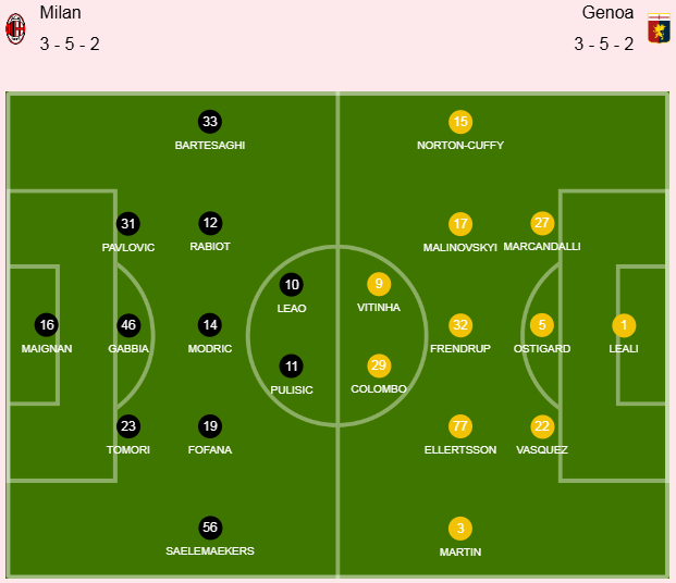 AC米兰上轮做客1比0小胜卡利亚里,近期连胜后继续排在积分榜次席,本轮开始前只落后同城死敌国际米兰1分,昨晚国米做客2比0击败帕尔马,暂时将领先优势扩大到4分。AC米兰缺少阿泰卡梅、圣地亚哥-希门尼斯和恩昆库,后者状态刚有所好转便再次受伤,令人唏嘘。做客的热那亚缺少喀麦隆国脚让-奥纳纳。穿!