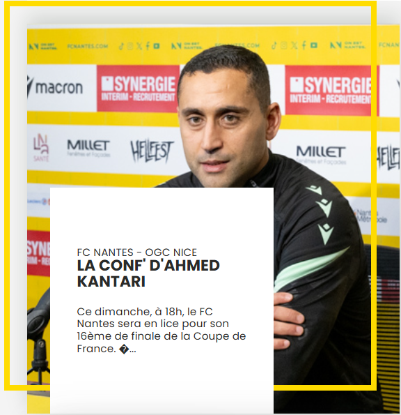 孔布瓦雷曾两度长时间执教南特,2021-22赛季帮南特夺得法国杯,2022-23赛季帮南特拿到法国杯亚军,了不起。坎塔里上任首战,1天后法甲做客昂热,太仓促了,客场1比4惨败。随后的法国杯客战法丙球队孔卡诺5比3大捷,上周末的法甲,客场2比0拿下强敌马赛!