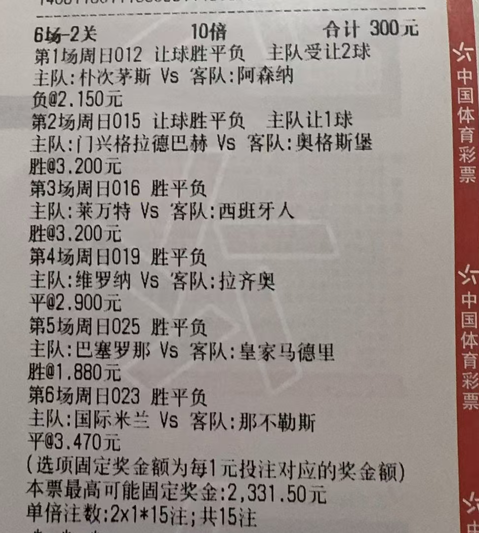 昨天的竞彩单呢?既然是事实,就要面对,无论是什么样的结果!