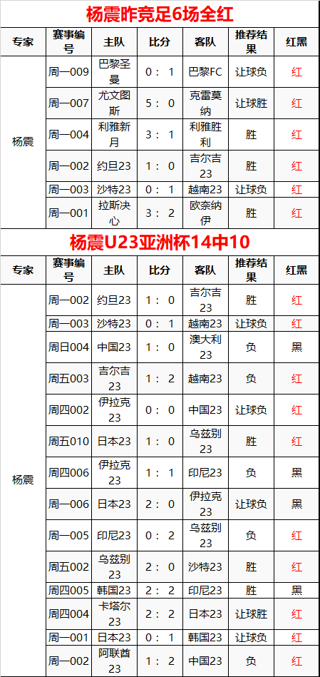 昨日竞足6场全红