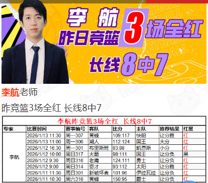 资深体育媒体人,前《足球周刊》主力干将,对国际足球和国内足球都很精通,2018年世界杯创造了淘汰赛单选12场连红的神话,对NBA也有比较深入的研究,篮球推荐最高16连红。