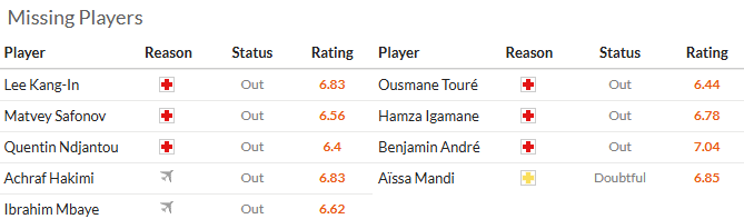 巴黎圣日尔曼近期两次面对同城对手小巴黎都表现不佳,联赛中是2比1小胜,随后在法国杯中直接主场0比1爆冷出局。在这两场比赛中间,还有一场法国超级杯在海外进行,巴黎2比2险平马赛,通过点球大战捧杯。姆巴耶和阿什拉夫还在参加非洲杯,李刚仁、萨索诺夫、恩吉安通因伤缺阵。里尔最近连续在联赛和杯赛中输给雷恩和里昂,状态不佳。安德烈、伊加马内等球员因伤缺阵,曼迪出战成疑。综合考虑,我力挺打穿!