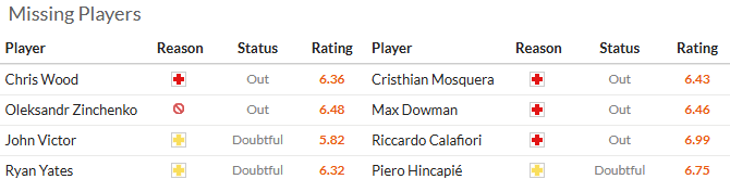 诺丁汉森林虽然只比降级区高1位,但领先降级区7分,暂时安全。球队最近一场比赛是英格兰足总杯,他们做客3比3打平英冠球队雷克斯汉姆,结果在点球大战中3比4出局,消耗非常大。新西兰中锋克里斯-伍德已经因伤缺阵多时,津琴科则有租借回避条款。耶茨和维克托出战成疑。阿森纳周中英联杯做客3比2击败切尔西,哲凯赖什传射建功状态不错。莫斯克拉、道曼和卡拉菲奥里因伤缺阵,因卡皮耶出战成疑。客胜!