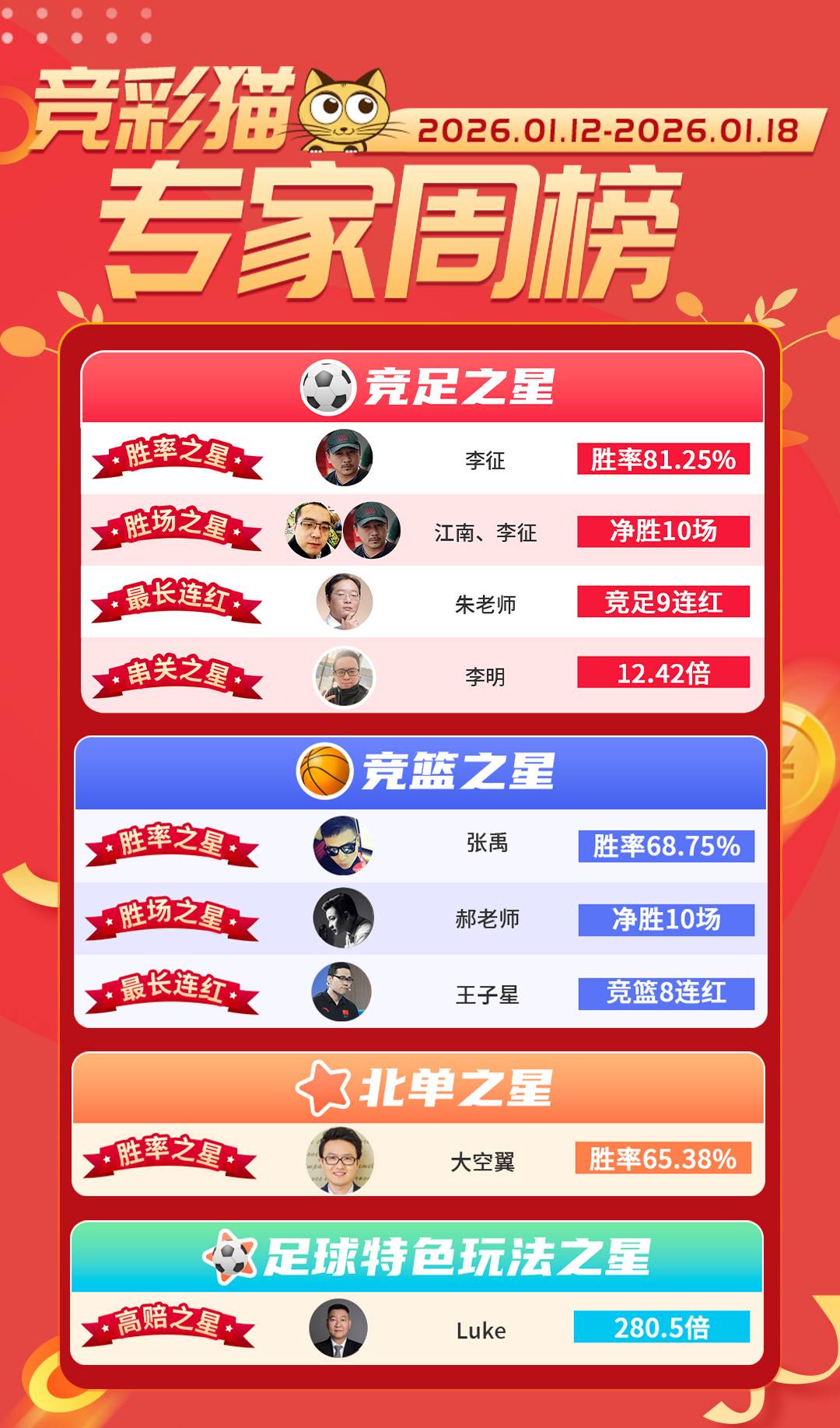 竞足专家周榜(1月12日-1月18日)