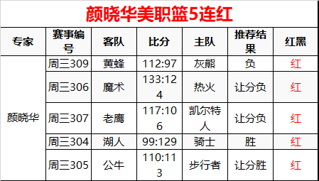 颜晓华昨美职篮5场全红 今日继续全力出击!