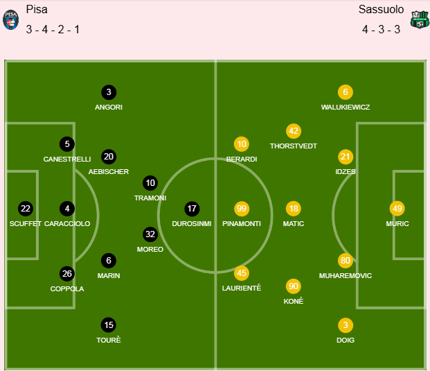 比萨上轮在客场先进两球的情况下2比6惨遭国际米兰大逆转,近10场比赛4平6负,即便如此,主教练吉拉迪诺暂时还是没下课,不过本场可能是他的大限之日。人员方面,后防老将阿尔比奥尔和卢萨尔迪等5人因伤缺阵。做客的萨索洛上轮在主场1比0击败克雷莫纳,暂时排在积分榜的第11位,领先降级区9分。博洛卡、坎德等人因伤缺阵。我认为吉拉迪诺既然在大败后没有下课,本场还是有缓儿,再支持一下比萨!加油!