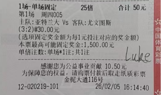 《单挑半全场》005亚特兰大vs尤文图斯(比分,进球数,半全场)