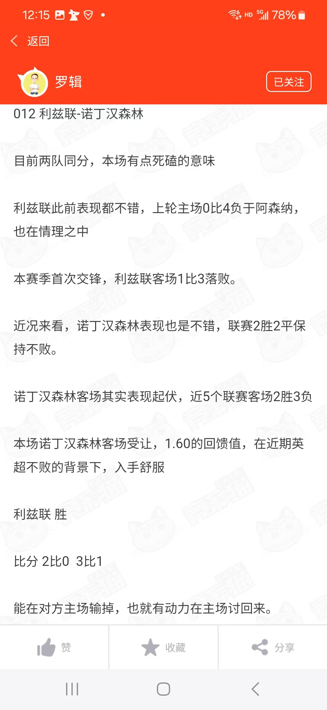 昨天的比赛较为符合逻辑思维,所以我的战绩就回归正常了,3场单关直接命中两场,3场全部命中了比分。