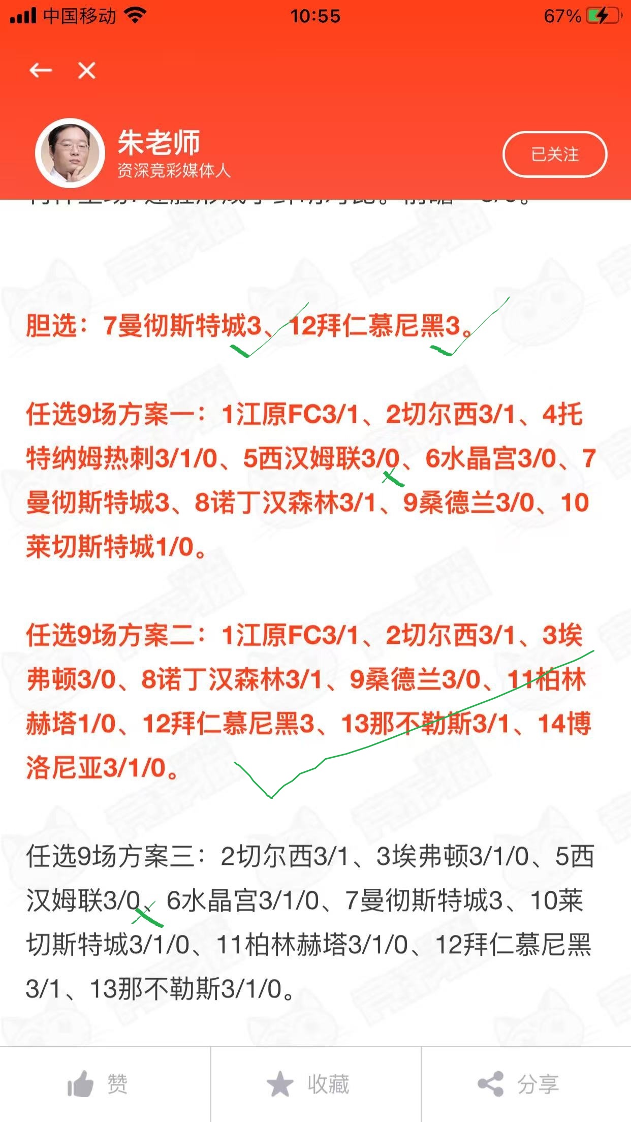 《朱 老师胜负彩》新年19次中奖的开局强势猛,2026开局出色!2023年6月以来已197次中奖!每年年末年初中奖都井喷的格局还在继续!上期的周二彩难度大,头奖无人中,我任9首个单子中8场可惜,不过第二个单子“1江原FC3/1、2切尔西3/1、3埃弗顿3/0、8诺丁汉森林3/1、9桑德兰3/0、11柏林赫塔1/0、12拜仁慕尼黑3、13那不勒斯3/1、14博洛尼亚3/1/0(768元方案)”擒21832大奖,为蛇年顺利结尾!今日马年第一期,我精心准备,已早早发稿,欢迎朋友们订阅查看。
