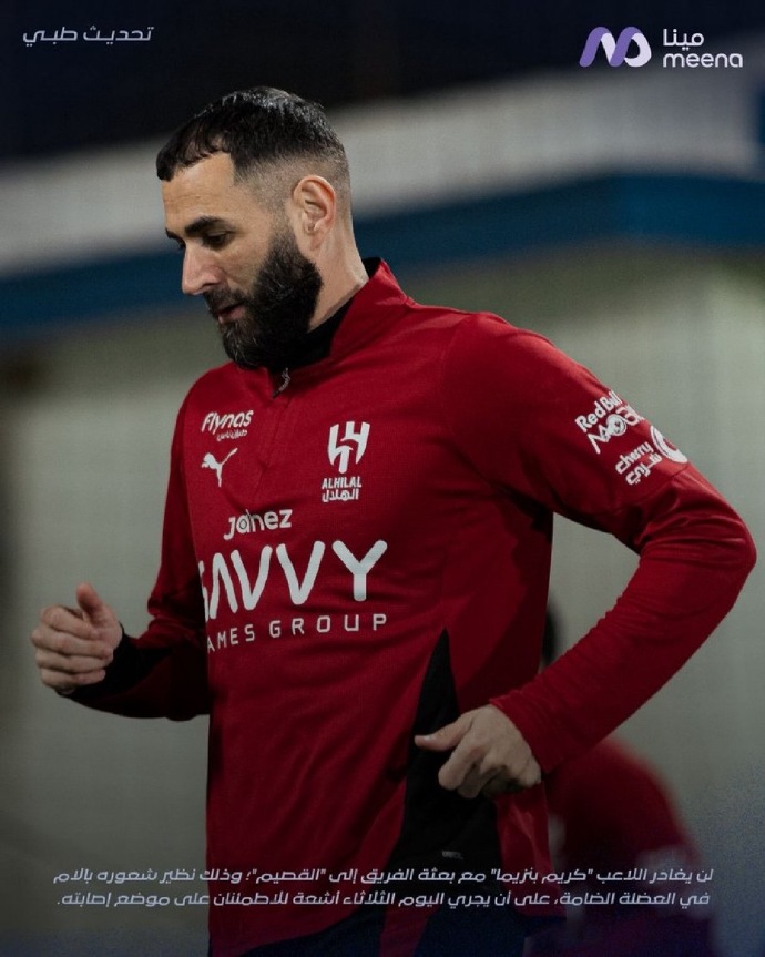 利雅得新月很强大,目前仍16胜6平保持不败。不过,球队的问题也很明显。半程转会期,俱乐部大动作引入了吉达联球星本泽马,希望将四强争霸改为单骑领跑。但事与愿违,C罗为首的竞争对手抗议他们强上加强之外,队内也因此闹得很不和谐——本泽马月初首秀客场6比0奈季兰沟渠,35分钟就完成职业生涯第18次帽子戏法并贡献1次助攻,成为沙特联赛最年长首秀戴帽球员(38岁),但随后4轮沙职均颗粒无收。上轮比赛后,更曝出他在中场休息时因状态不佳与教练争执,引发队友们的公开不满和更衣室紧张气氛。昨日,俱乐部宣布因内收肌疼痛,本泽马(上图)将缺席今日比赛。此举确实能稍微掩饰下队内不和,但本泽马入队时就挤掉了乌拉圭射手努涅斯(14首发2替补6球4助攻)的沙职报名资格——今日等于利雅得新月白白少了一个主力前锋!