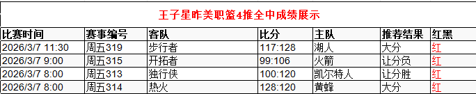 管维佳昨竞篮4推全中 美职篮5连红近21中16
