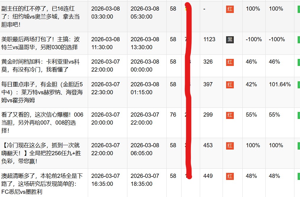 另外我的专栏中还会有超信心且不中返的“百搭场次”、早晨各个美洲赛事的“每日最终单”等红色系列选择,只要达标的比赛出现,我就会来给到您。