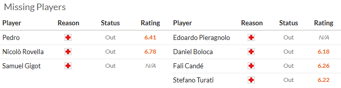 拉齐奥周中踢了意大利杯的半决赛首回合,主场2比2打平亚特兰大,次回合要在一个月后,所以这场比赛没有任何理由保留。但拉齐奥本赛季的整体表现就是不好,老帅萨里也很无奈。罗维拉、佩德罗、吉格特都因伤缺阵。萨索洛近6轮赢下5场,排名和积分都已经超越拉齐奥,其中上轮在主场被罚下一人的情况下2比1爆冷击败亚特兰大。被罚下的皮纳蒙蒂本场停赛,另有多人因伤缺阵。综合考虑,我看好萨索洛不败!