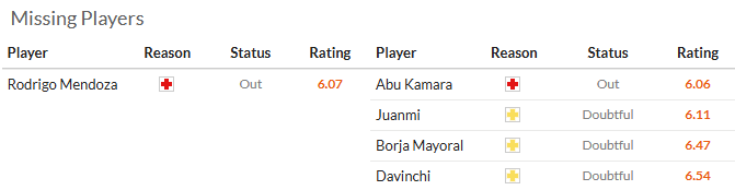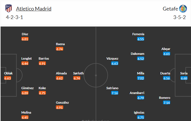 马德里竞技周中欧冠在主场5比2大胜热刺,球队在联赛排名上压力不大,保住前4即可,争冠完全不现实。人员方面,球队的阵容很齐整,只有罗德里戈-门多萨因伤缺阵。赫塔费也是马德里的球队,并且之前曾经做客1比0击败皇马。球队通过一波抢分攻势后,目前处于无欲无求的境地。马竞一周双赛强势让步,可捧!