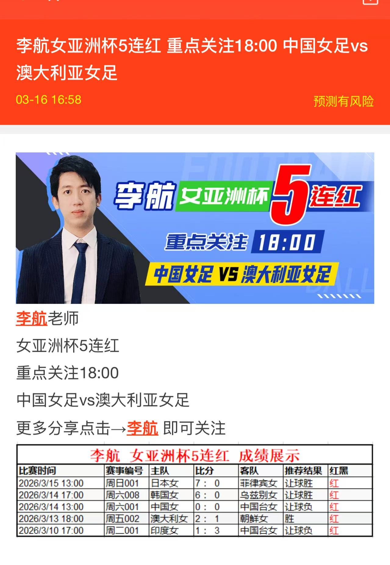 昨天状态不佳,遭遇“黑色星期一”。今天有高胜率加持的赛事比较多,其中女足亚洲杯达成5连红,中国女足将在半决赛遭遇东道主澳大利亚女足,欧冠则是近10中8。在这里分享过一场NBA,感谢支持,祝好运!