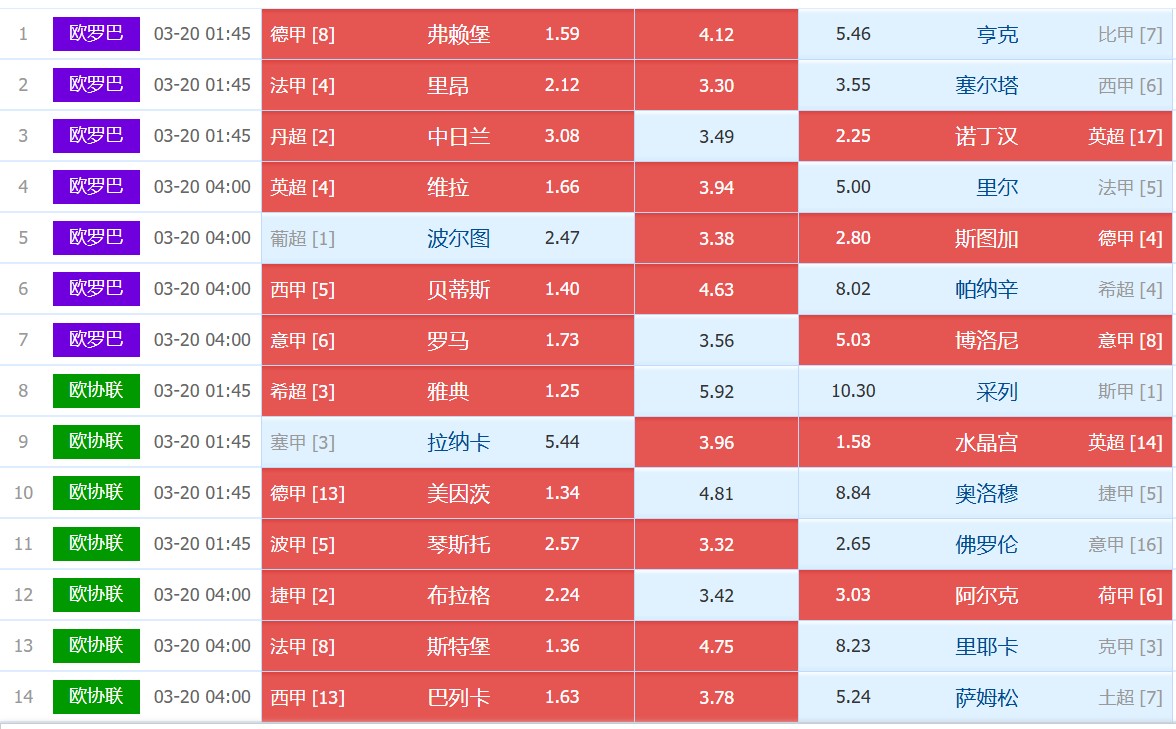 主队弗赖堡这几年其实都是中上游的定位。本赛季球队是要多线作战,阵容有些单薄,导致客战能力下滑,暂时联赛是9胜7平10负排在第8名,确实受到了影响,而德国杯到了半决赛,欧联小组赛5胜2平1负直接进入1/8决赛。客队亨克在比甲肯定算是比较强的球队之一了,本赛季球队确实多线作战压力是有的,暂时联赛常规赛11胜8平10负排在第7名,夺冠肯定没机会了,就看有没有可能进入冠军赛。而比利时杯止步1/8决赛,欧联进入到小组赛后是拿到5胜1平2负,以净胜球劣势只能去打淘汰赛附加赛,好在惊险搞定萨格勒布迪纳摩进入1/8决赛。首回合交手,弗赖堡是客场小负。这次给到主让步,对于弗赖堡是有支持,相对来说力度还是有的,而弗赖堡确实近况不好,所以主胜的信心有点差,这个局面下主热度其实相对可控。(竞彩玩法的最终选择可以届时看我发布的本场建议,那里会说明究竟是如何选择,看好的比分是什么,欢迎关注带您赢)