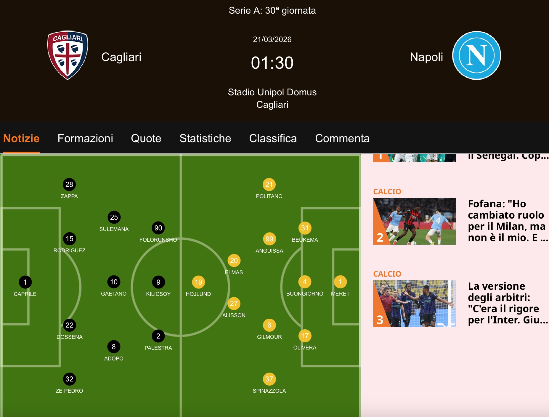 那不勒斯上轮主场2-1击败莱切,近期取得了3连胜,球队在恢复了单线作战后成绩有所提升,目前18胜5平6负在积分榜排名第3位,落后榜首的国际米兰9分争冠希望不大,最后阶段任务是拿到下赛季的欧冠参赛资格,本场后卫胡安、拉赫玛尼、迪洛伦佐、中场洛博特卡、韦尔加拉加斯、前锋内雷斯都因伤缺席。