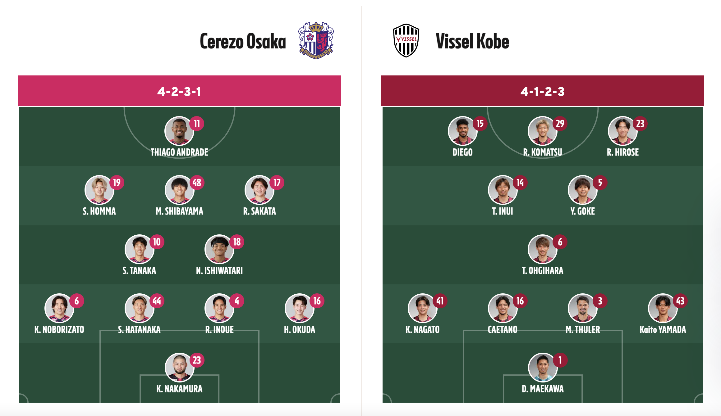 神户胜利船上轮2-2战平大阪钢巴后点球告负,过程跌宕起伏。小松莲率先破门,帕特里克替补建功展现板凳深度。但球队目前伤病严重,大迫勇也、武藤嘉纪、佐佐木大树以及酒井高德均无法出战,三条线均受影响。主帅斯基贝不得不启用更多替补球员,好在小松莲近期状态出色,逐渐承担起进攻重任。今天首发来看,小松莲继续首发,迭戈改打边锋,乾贵士获得首发,中场扇原贵宏坐镇,后防图尔勒+卡埃塔诺。