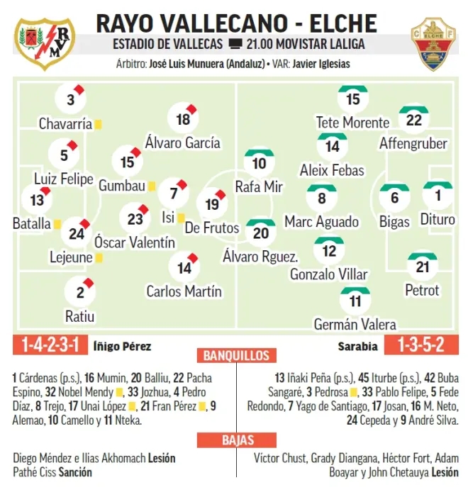 巴列卡诺最近一轮联赛做客0比1输给巴塞罗那,目前还领先降级区4分,需要继续努力抢分。人员方面,非洲杯国脚帕斯-西斯停赛,迭戈-门德斯、阿克马奇因伤缺阵。埃尔切是升班马,开局表现很好,但随着时间的深入,球队的战绩越来越差,在上轮主场2比1击败马洛卡前,他们一度12场4平8负不胜。丘斯特、迪亚加纳、亚当-博亚尔等人都因伤缺阵。对于“闪电”来说,这场应该是保级必须要拿下的比赛,我力挺主胜!