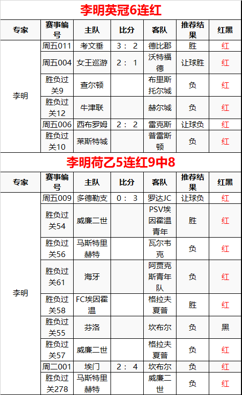 李明英冠6连红 荷乙5连红9中8