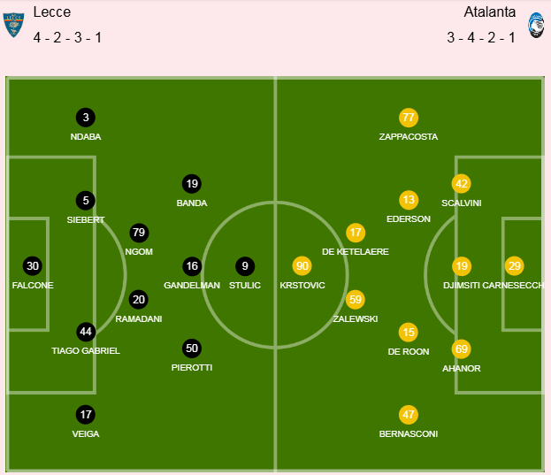莱切上轮做客0比1不敌罗马,近5轮1平4负,目前球队和克雷莫纳同积27分,莱切如果本场拿到1分,就可以暂时超越克雷莫纳逃离降级区。亚特兰大方面,后卫科拉希纳茨和希恩都在国家队比赛中受伤。搏让胜!