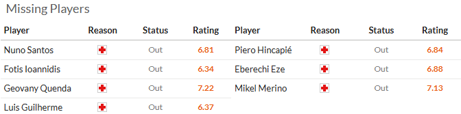 里斯本竞技上轮做客0比3输给博德闪耀,回到主场追平比分,并在加时赛赢球晋级,完成了不可思议的大逆转。而在联赛中,他们也保持了不错的状态,上轮做客2比0击败卡萨皮亚。人员方面,努诺-桑托斯、约奥尼迪斯、昆达和吉列尔梅因伤缺阵。阿森纳在联赛杯和足总杯接连吃瘪,状态下滑,有崩盘迹象。本场因卡皮耶、埃泽和梅里诺确定因伤缺阵。锋霸哲凯赖什状态不错,本场面对旧主他的表现至关重要,看好客胜!