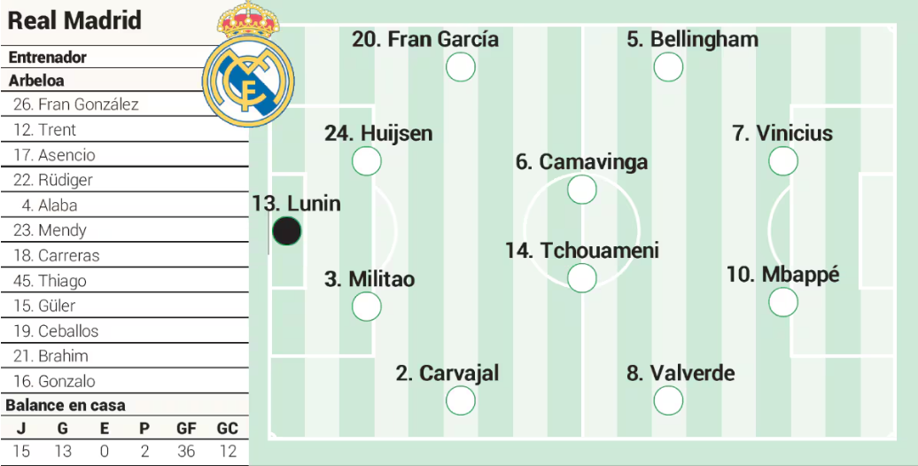 皇马在欧冠1/4决赛首回合主场1比2不敌老对手拜仁,次回合做客慕尼黑凶多吉少。目前他们在联赛中落后巴塞罗那7分,逆转的希望也不大,尤其是上轮做客马洛卡竟然1比2被绝杀。人员方面,马斯坦诺托本场停赛,这位以6000万欧元高价加盟的阿根廷新星已经成为槽点,他的表现远低于大家的预期。此外,主力门将库尔图瓦以及边锋罗德里戈都因伤缺阵,后者甚至可能因伤无缘世界杯,法国后卫费朗-门迪出战成疑。