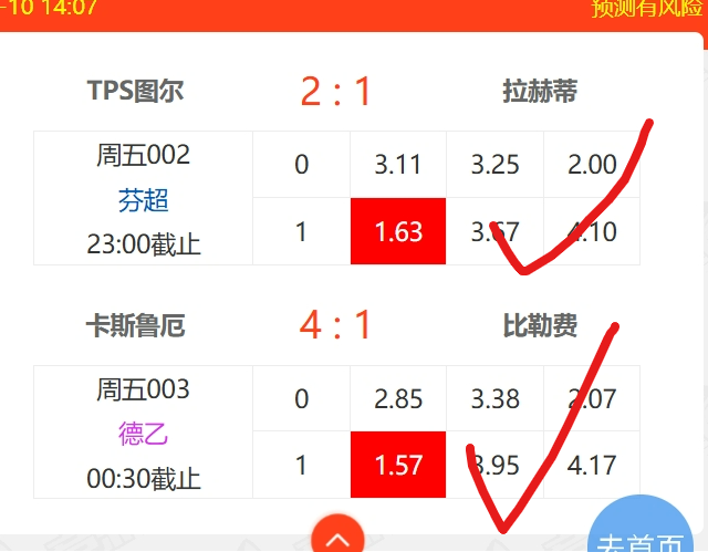 今日再给大家两场竞足公推,截稿时成绩出色,如下: