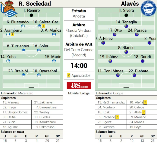 皇家社会上个主场2比0完胜降级区的莱万特,目前只落后第5的皇家贝蒂斯4分,西甲在下赛季有机会拿到5个欧冠资格,所以皇家社会肯定会全力以赴。日本边锋久保建英已经伤愈复出,冰岛国脚前锋奥斯卡尔松也是如此,并且他已经在冰岛国家队的比赛中取得进球。奥德里奥佐拉、扬格尔-埃雷拉和鲁佩尔斯等人因伤缺阵。阿拉维斯上轮在主场2比2战平奥萨苏纳,领先降级区3分,阵容还算齐整。本场我还是力挺主胜!